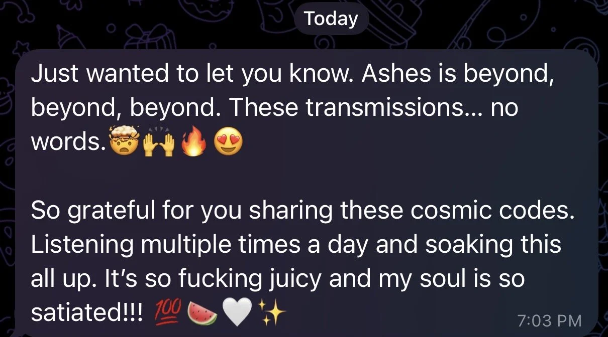 ASHES is a biological realignment experience focused on nervous system regulation and deconditioning delivered transmission.